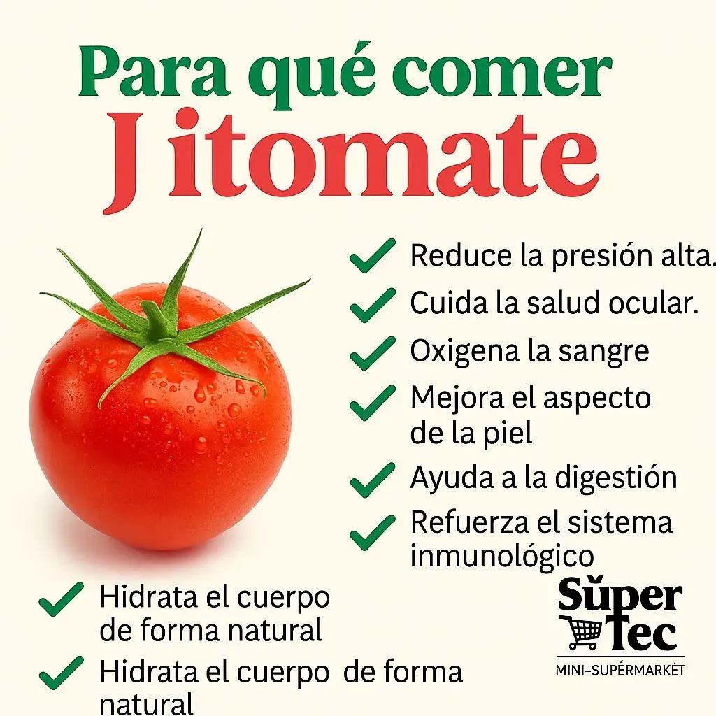 🍅 Jitomate fresco Súper TecJitomate rojo, firme y jugoso, seleccionado por su frescura y sabor natural. Ideal para salsas, ensaladas y guisos del día a día. Calidad garantizada a precio barato, para que lleves lo mejor a tu mesa sin pagar de más.